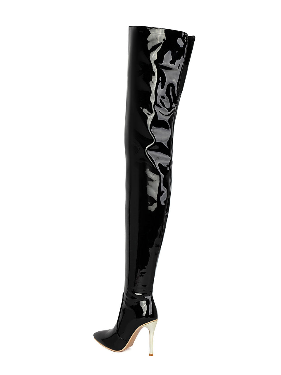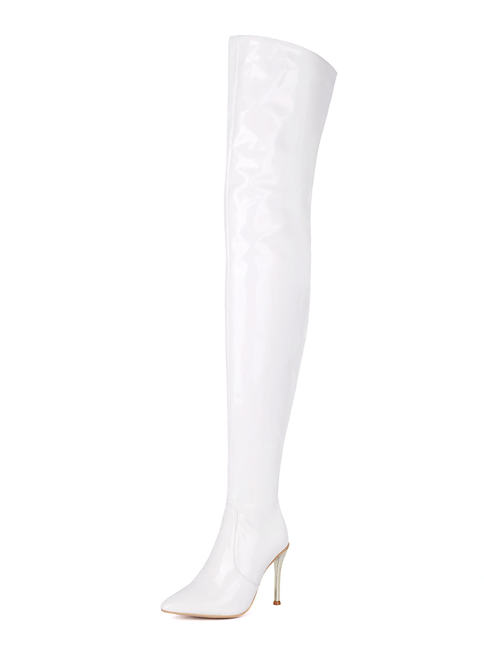 18% OFF 10CM Women‘s Patent Leather Thigh Ultra High Stiletto Heel Over The Knee Warm Boots with Pointed Toe