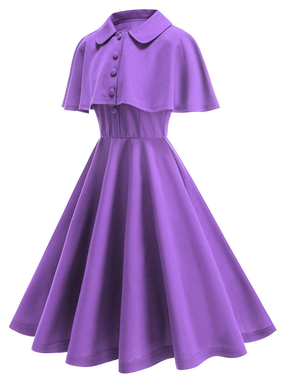 Classic Short Sleeveless 50S Swing Christmas Dress With Cape