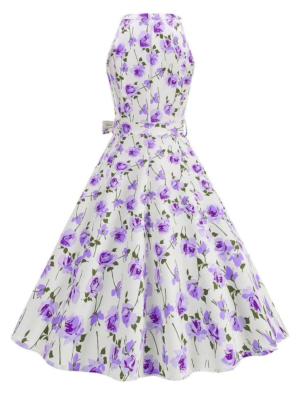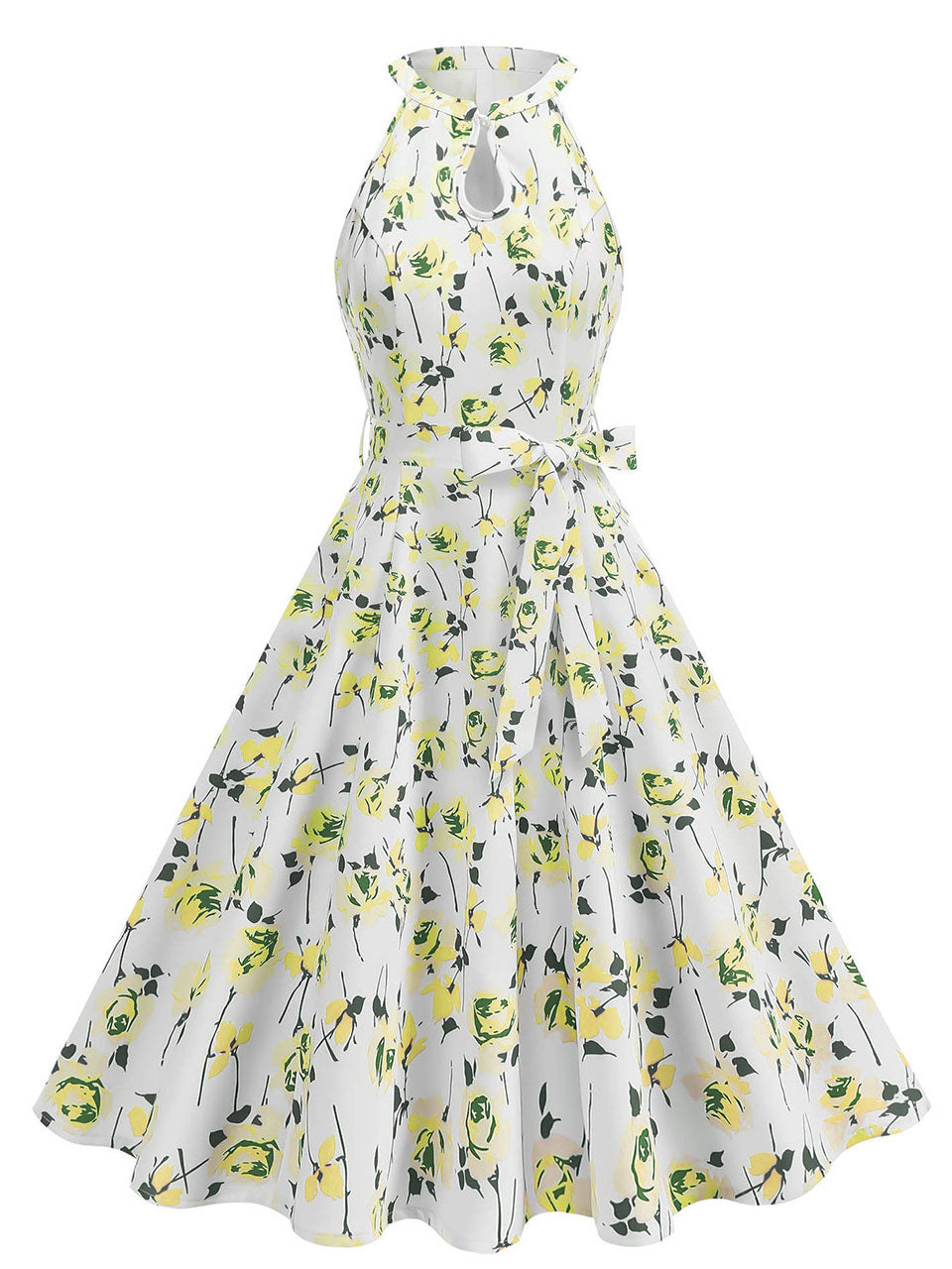 Floral Sleeveless Halter Neck 50S Swing Christmas Dress
