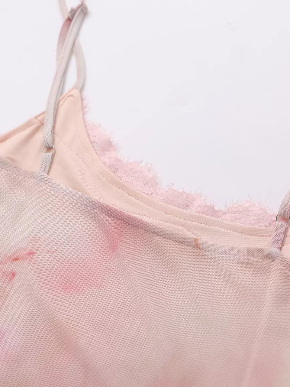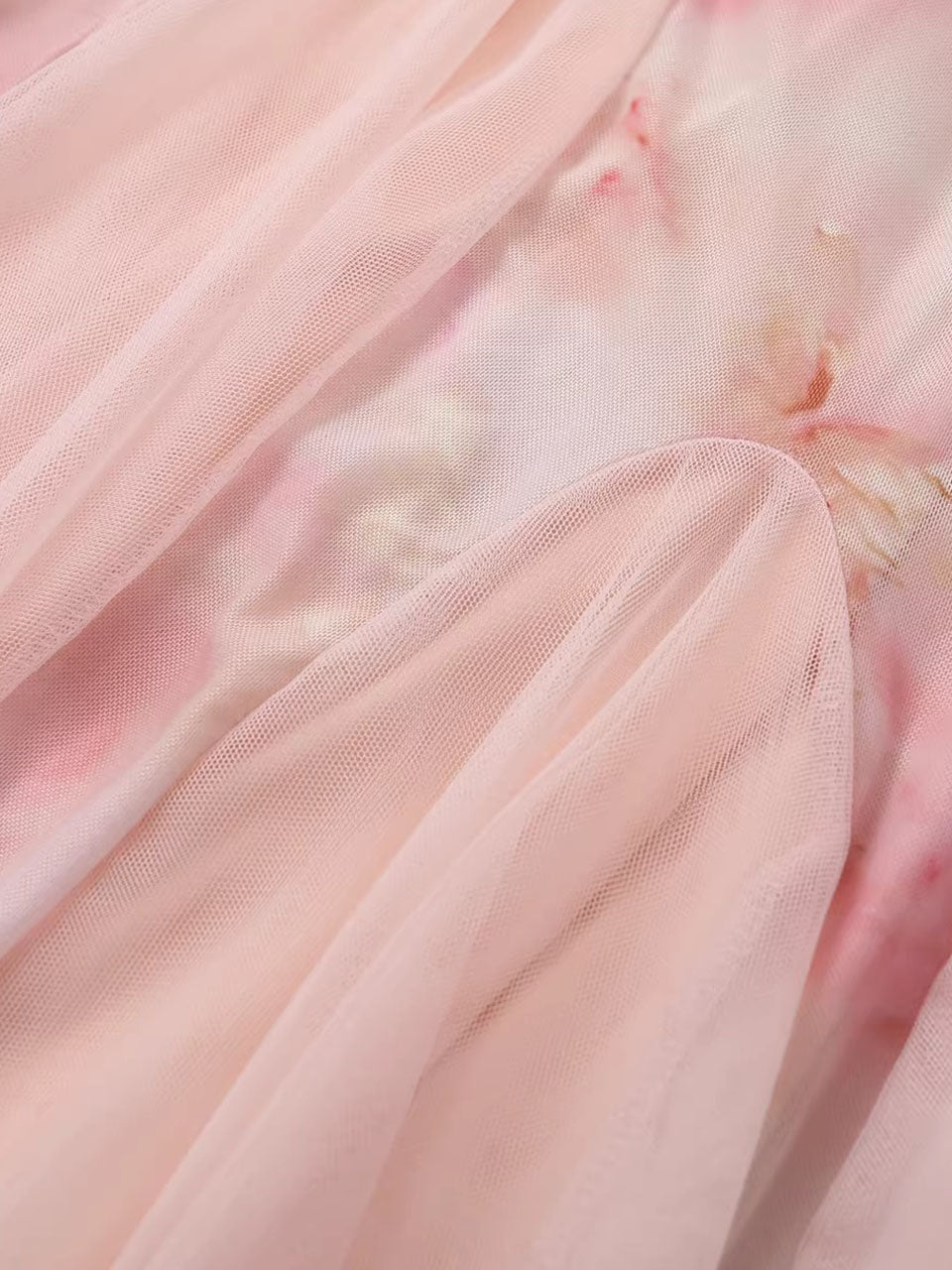 Pink Floral Print Spaghetti Strap Fish Tail Swing Party Maxi Dress