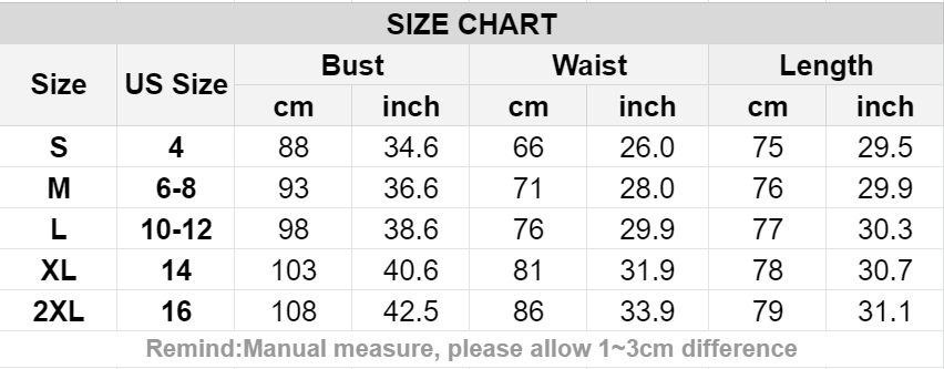 Size: There are 5 sizes (S/M/L/XL/XXL) available. Please allow 1-2cm differs due to manual measurement. Thanks for understanding! (All measurement in cm and please note 1cm=0.39inch)