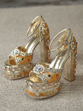 20% OFF 14CM Platform Luxury Flower Chunky Heels Sandals Retro Shoes