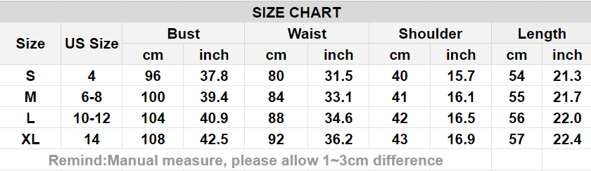 Size: There are 4 sizes (S/M/L/XL) available. Please allow 1-2cm differs due to manual measurement. Thanks for understanding! (All measurement in cm and please note 1cm=0.39inch)