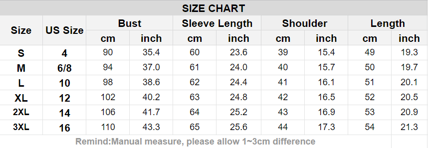 Size: There are 7 sizes (XS/S/M/L/XL/2XL/3XL) available. Please allow 1-2cm differs due to manual measurement. Thanks for understanding! (All measurement in cm and please note 1cm=0.39inch)