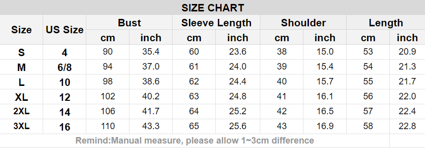 Size: There are 6 sizes (S/M/L/XL/2XL/3XL) available. Please allow 1-2cm differs due to manual measurement. Thanks for understanding! (All measurement in cm and please note 1cm=0.39inch)