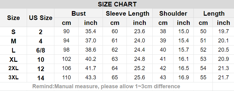 Size: There are 7 sizes (S/M/L/XL/2XL/3XL) available. Please allow 1-2cm differs due to manual measurement. Thanks for understanding! (All measurement in cm and please note 1cm=0.39inch)