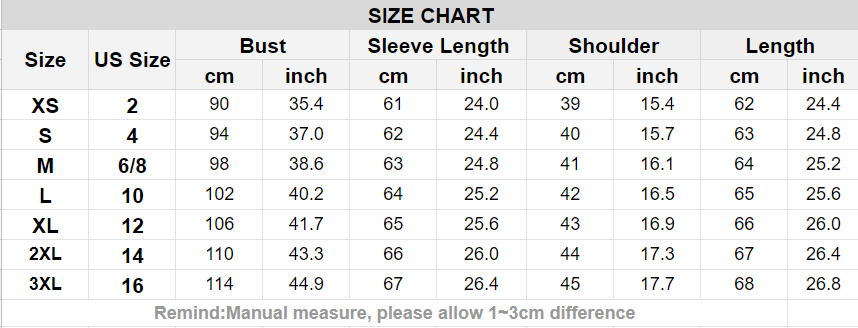 Size: There are 6 sizes (XS/S/M/L/XL/2XL/3XL) available. Please allow 1-2cm differs due to manual measurement. Thanks for understanding! (All measurement in cm and please note 1cm=0.39inch)