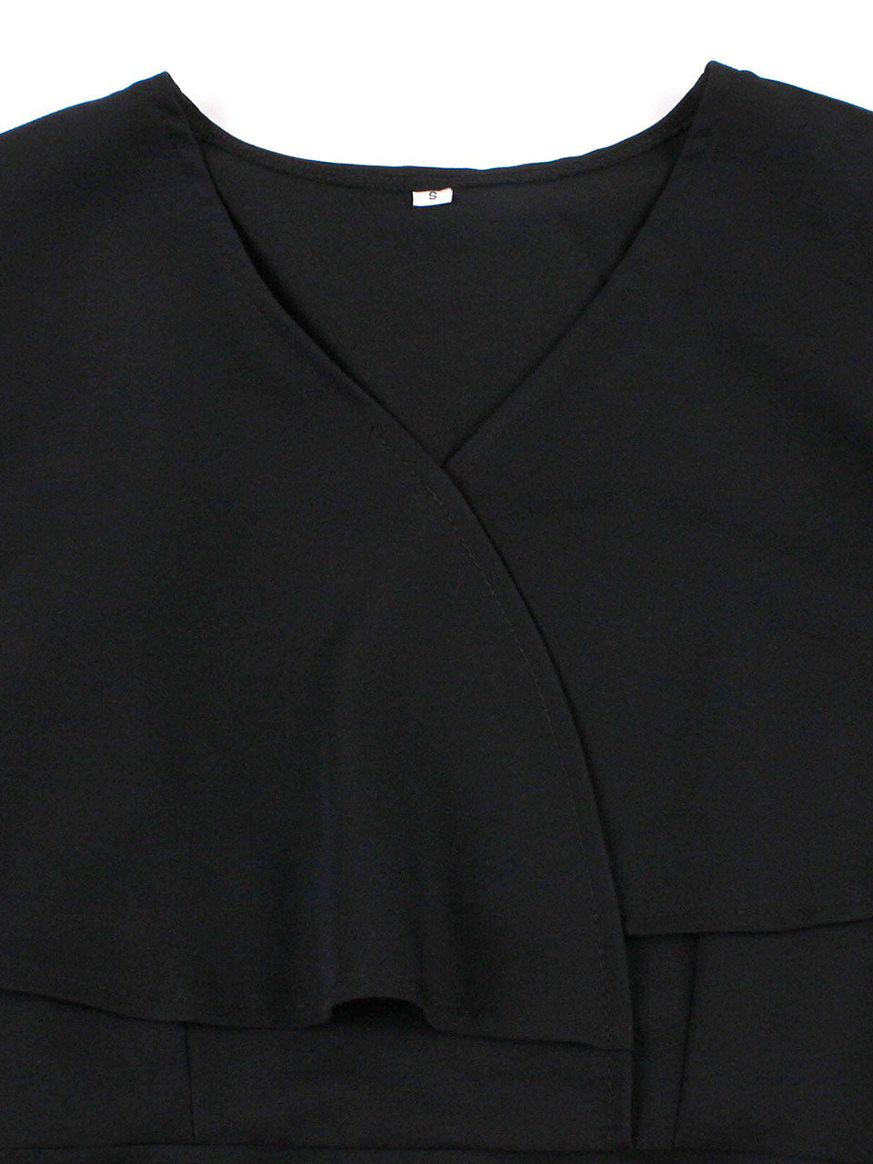 Audrey Hepburn Inspired Black Vintage Dress Elegant V-Neck Flounced Cape Cocktail Gown