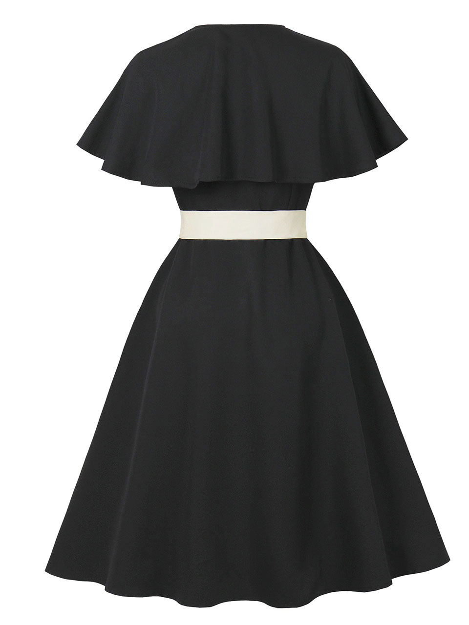 13% OFF Audrey Hepburn Inspired Black Vintage Dress Elegant V-Neck Flounced Cape Cocktail Gown