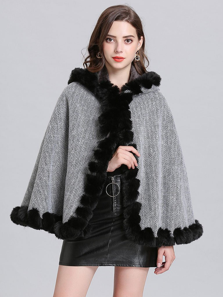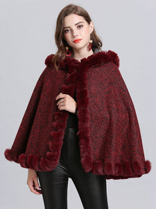 Hooded Winter Coat Faux Fur Long Sleeve Open Front Luxurious Cape Coat For Women