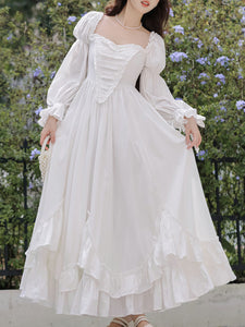 White Square Collar Long Lantern Sleeves Edwardian Ruffle Dress